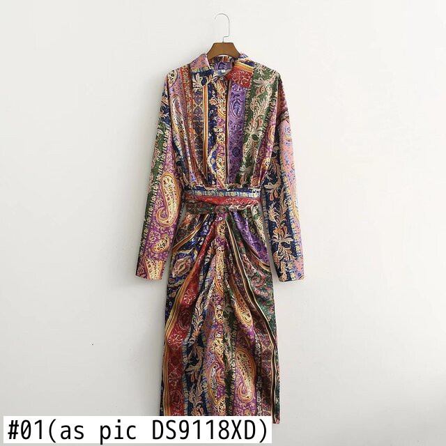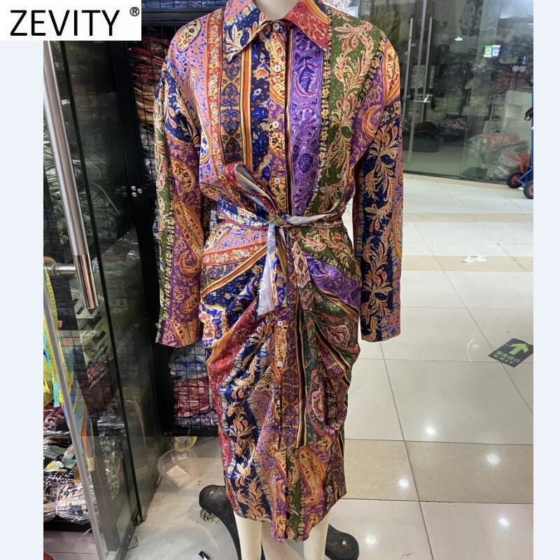ZEVITYレディースパッチワークコートトーテムフラワープリントプリーツドレスシックなシングルブレストサッシ トートバッグ フラワーデザイン
