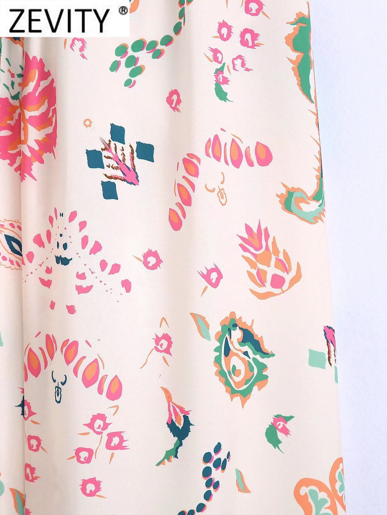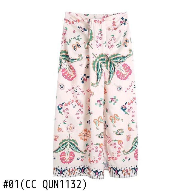 女性ペイズリーフローラルプリント結び目サロンミドルスカートファルダスシックバックジッパーAライン 花柄