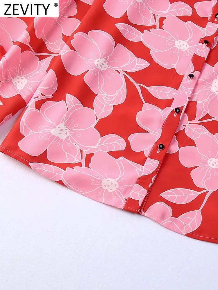 女性ピンクフローラルプリントレッドスモックブラウス長袖ボタンシャツシックなトップスLS1278 ロング 花柄