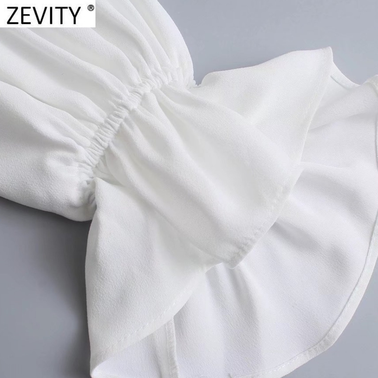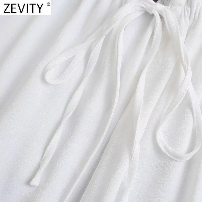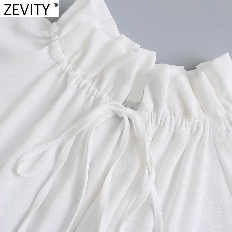 女性ストリートレースアップフリル襟白ブラウスシックな長袖弾性スウィートシャツトップス LS9983 ロング ホワイト エラスティック 伸縮 大人ガーリー キュート カジュアル