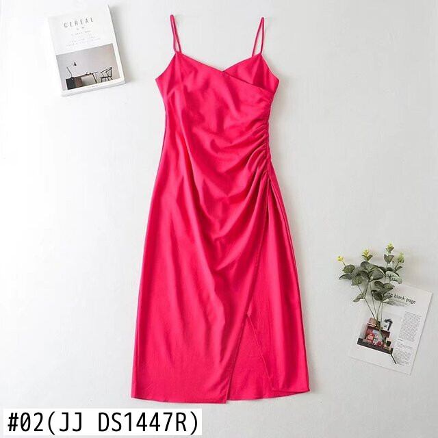 女性セクシークロスVネックサイドプリーツスリングミディドレスシックな夏のスパゲッティストラップバックジッパー サマー 夏物
