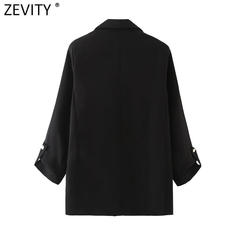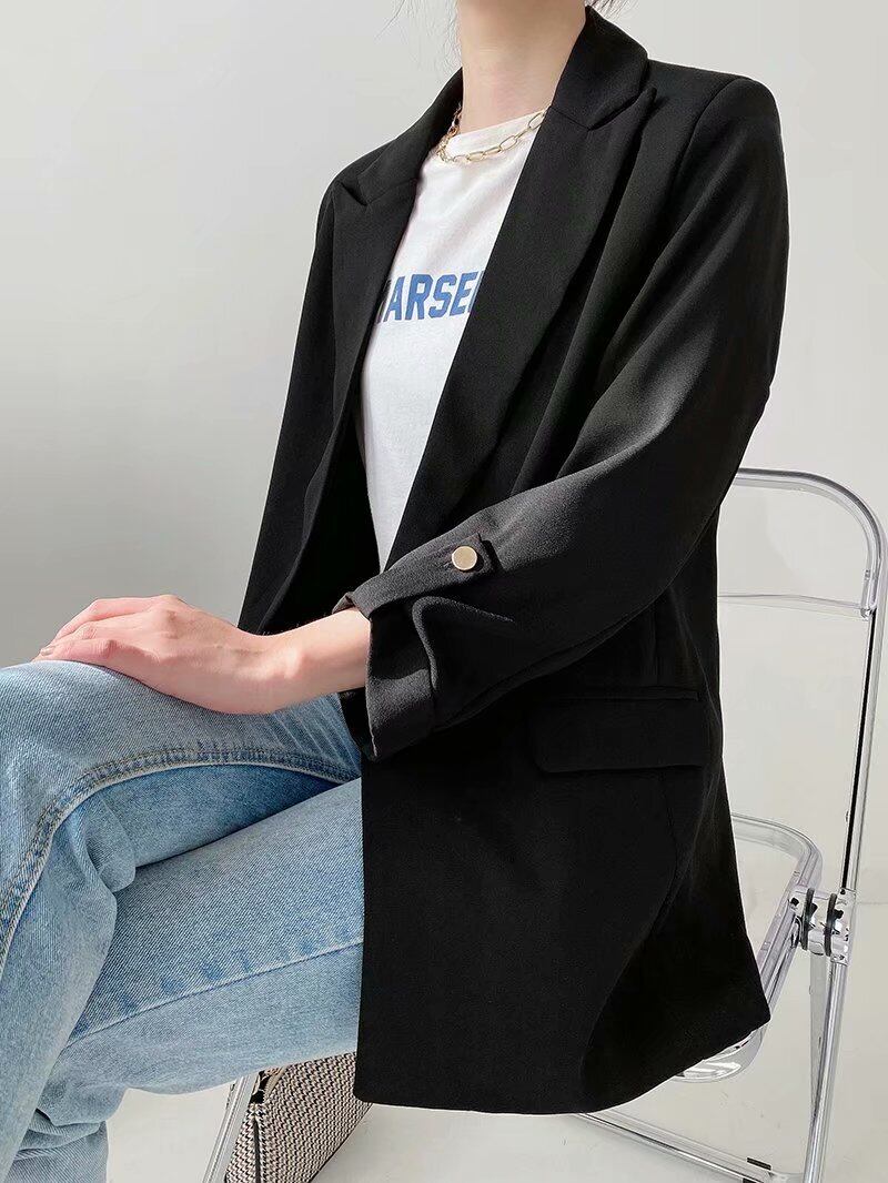 2021年女性ノッチカラーフィッティングブレザーコートオフィスロールアップスリーブポケットシックなオープンステッチトップスSW712 会社 学校 通勤や通学にも