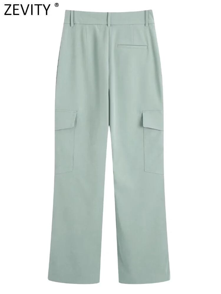 女性ポケット パッチ サファリ スタイル カーゴ パンツ シックなジッパー フライ長ズボン Pantalones P413 ロング