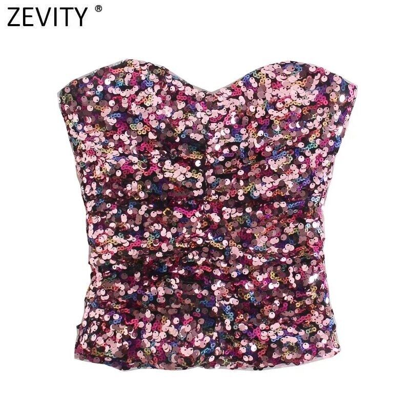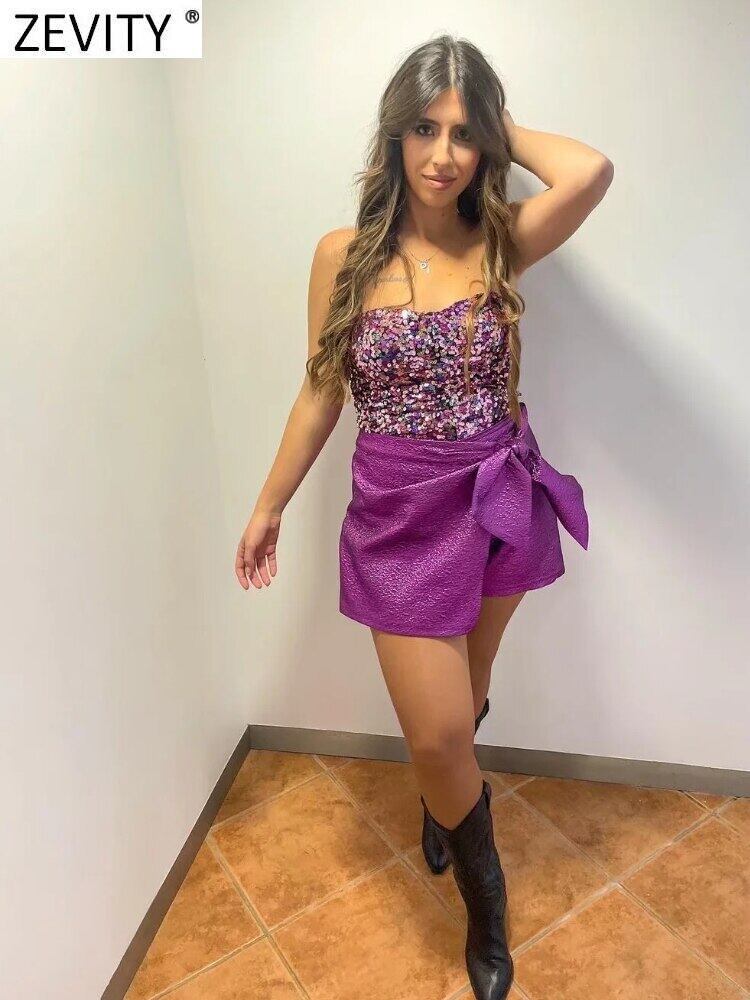 女性夏Y2KパーティーパープルノースリーブチューブキャミオフショルダークラブコルセットタンクレディストラップレススパンコールクロップトップスLS9958 サマー 夏物