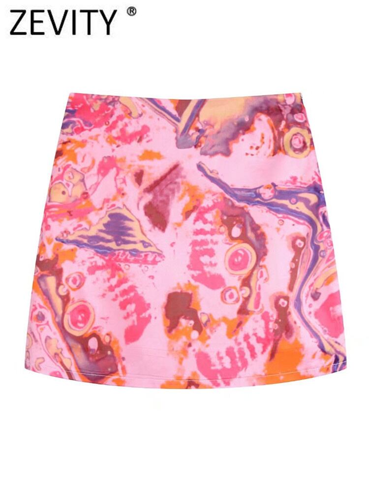 女性タイダイフローラルプリントミニスカートファルダスサイドジッパーソフトタッチAライン 花柄