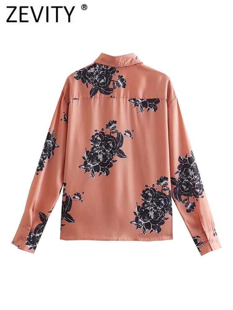 女性フローラルプリントスモックブラウスオフィスレディ長袖ブレストビジネスシャツシックトップスLS1725 ロング 花柄 会社 学校 通勤や通学にも