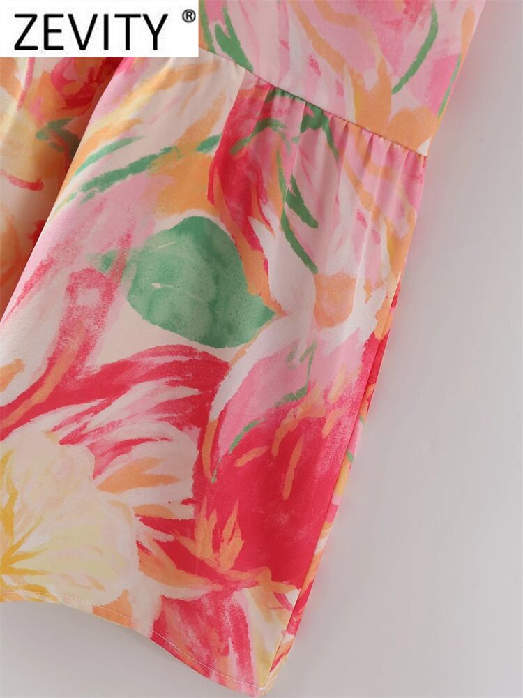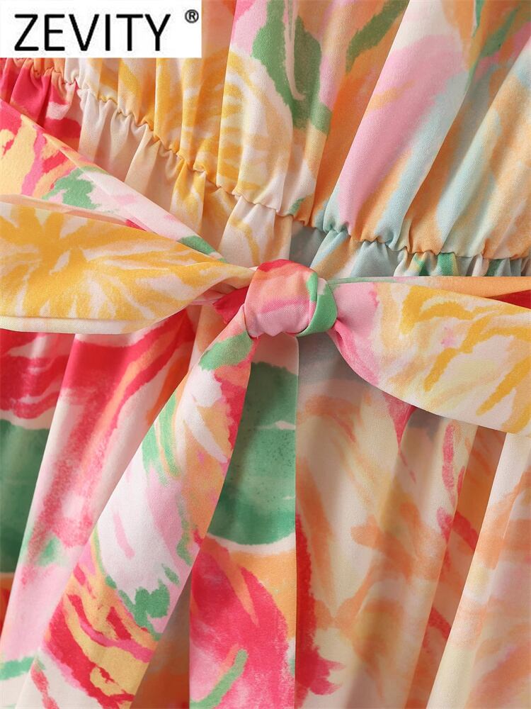 ZEVITY女性セクシーなスラッシュネックフリルカラフルな絞り染めプリントミディドレスシックな夏のサッシボヘミアン ラッフル サマー 夏物