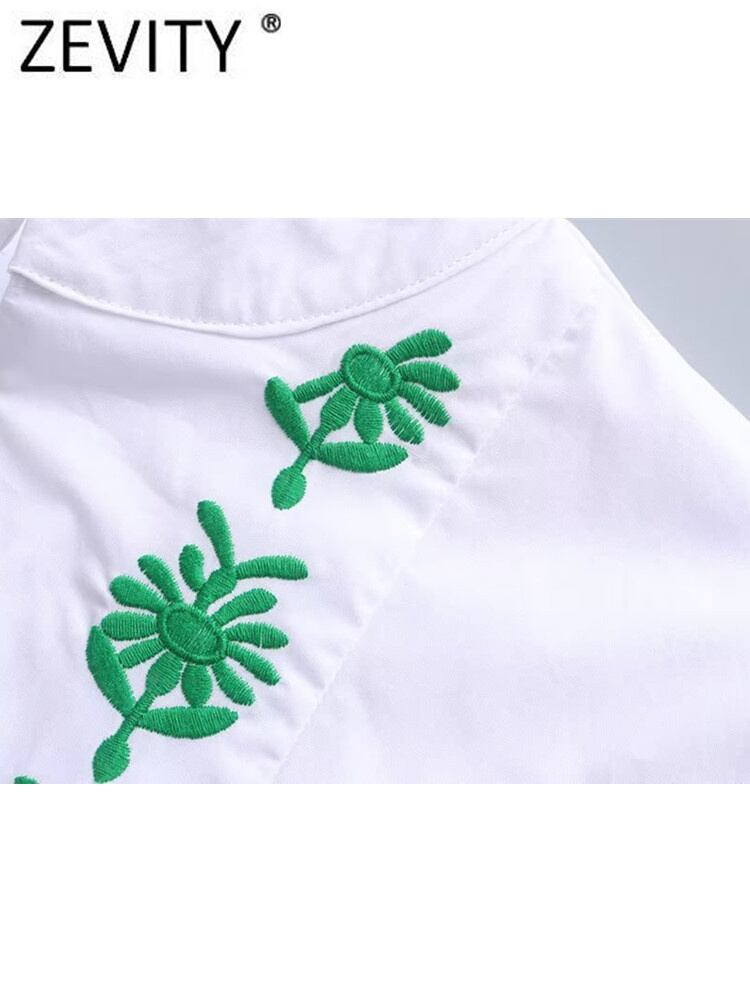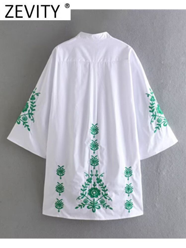 女性スタンドカラーグリーンフローラル刺繡ホワイトミニドレスシックフレアスリーブサイドスプリットヴェスティドスDS1634 刺繍 花柄