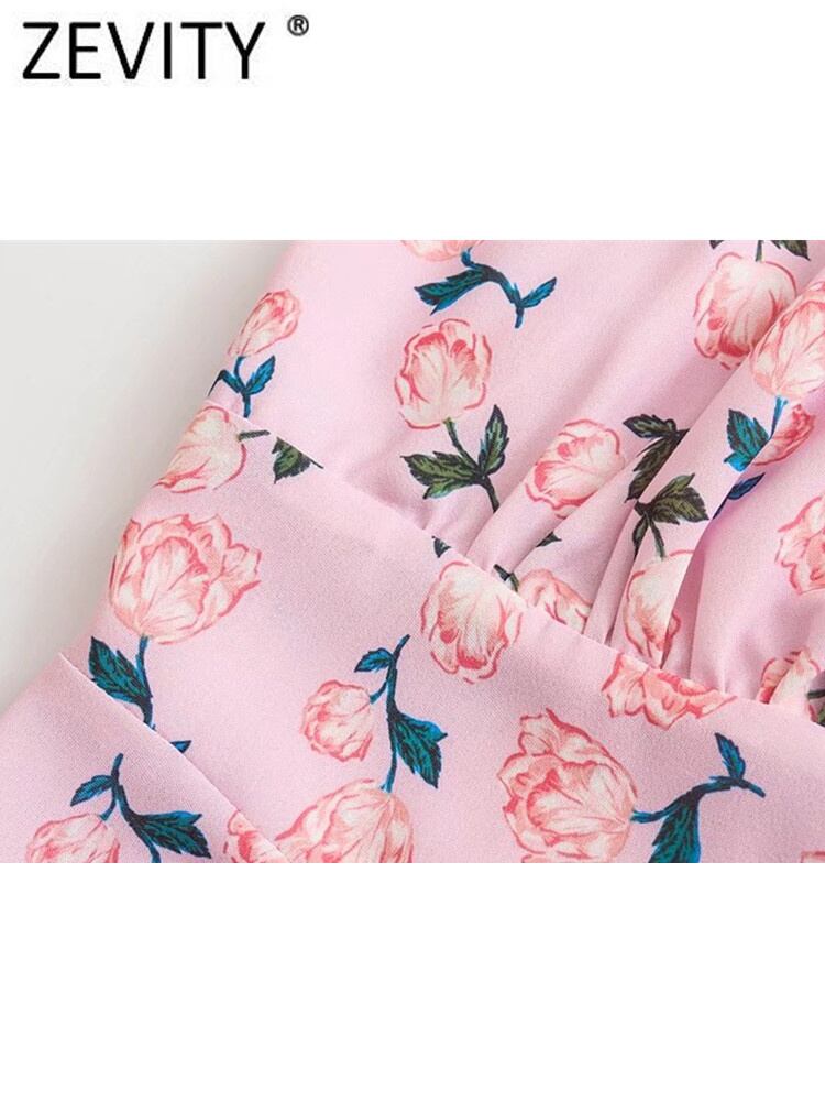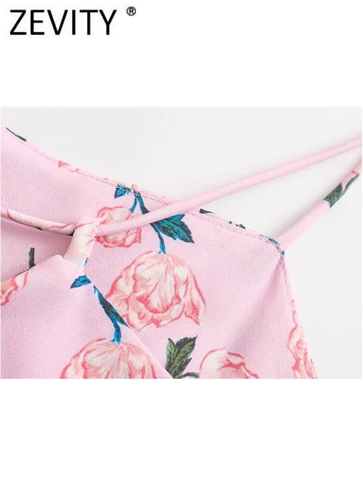 女性セクシースパゲッティストラップフローラルプリントプリーツスプリットミディドレスバックジッパーレースアップスリング 花柄