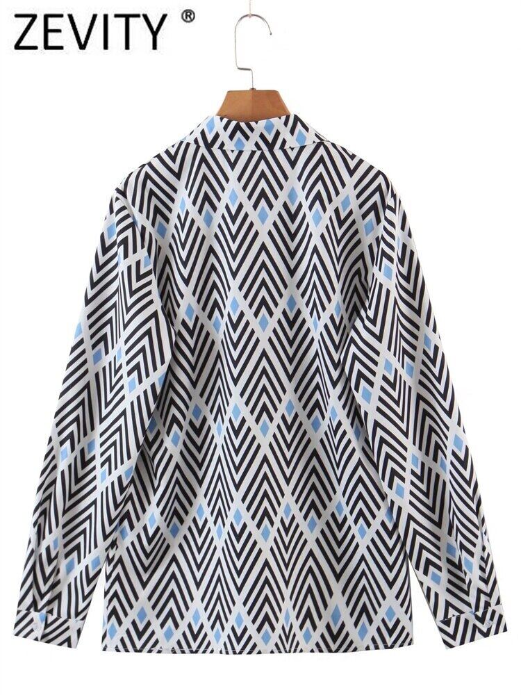 女性の幾何学的なプリントブラウス長袖ブレストビジネスシャツシックなトップスLS1797 ロング