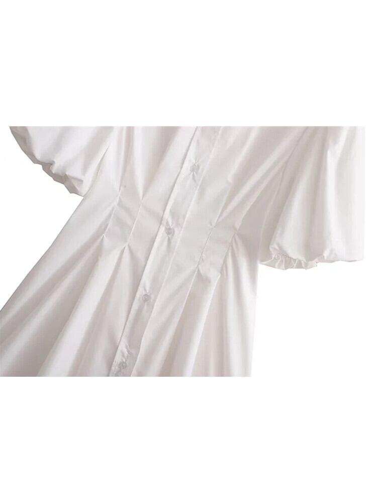 女性は襟プリーツランタンスリーブホワイトポプリンシャツドレスレディシックボタンスリムを断る