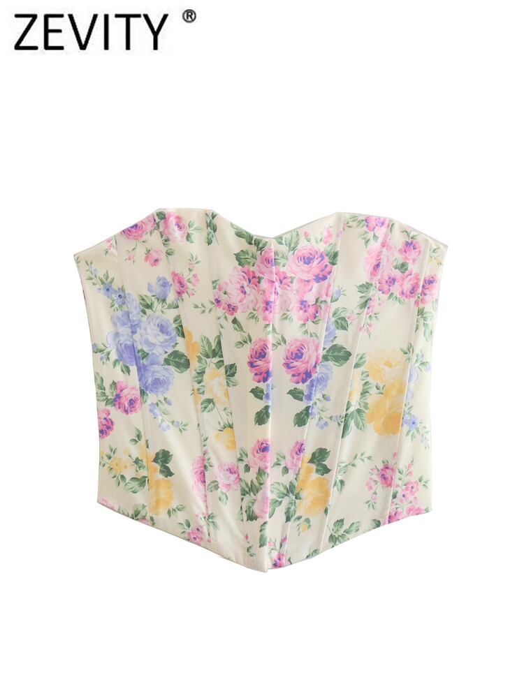 女性セクシーフローラルプリントプレスフォールドスリムショートスモックブラウスバックバックルシャツシックなコルセットスタイルクロップトップLS896 花柄