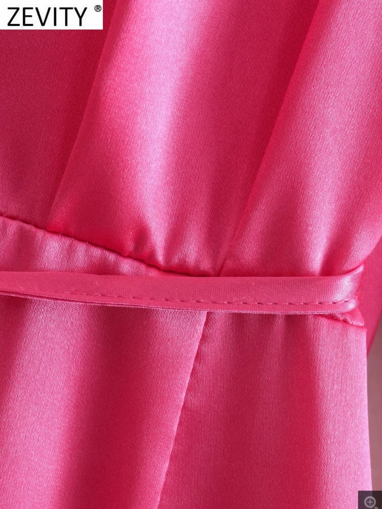 ZEVITY 女性スリーブ羽ソフトサテンミニドレスシックなサイドプリーツレースアップ A ライン Vestidos DS9324 Aライン