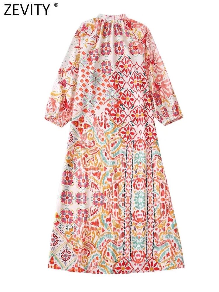 女性花柄幾何学模様ルーズミディシャツドレスシックな七分袖レトロ