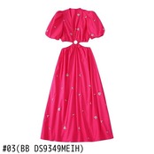 ZEVITYウィメンズホリデーウィンドウエストホローアウトパフスリーブポプリンミディドレスシックなフラワー刺繍サマーベスティドスDS9349 夏物 フラワーデザイン