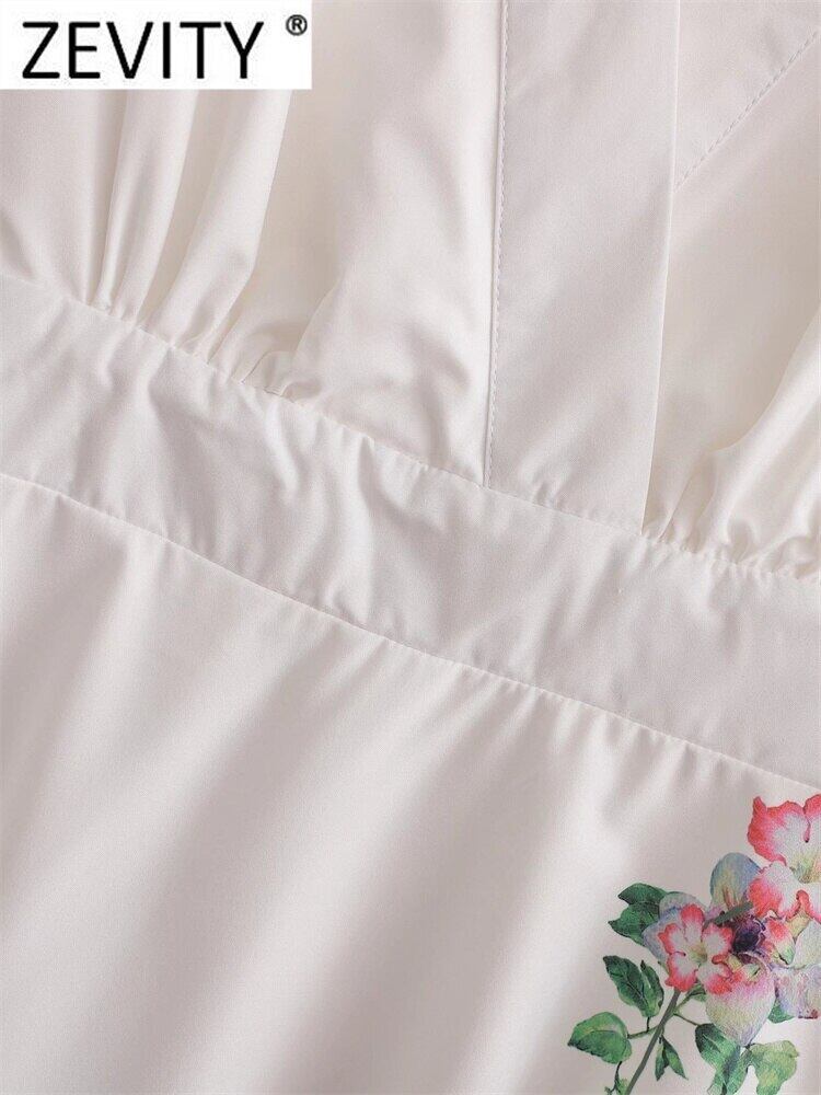女性クロスVネックポジションフローラルプリントホワイトAラインドレスシックなバックジッパースリムミニ 花柄