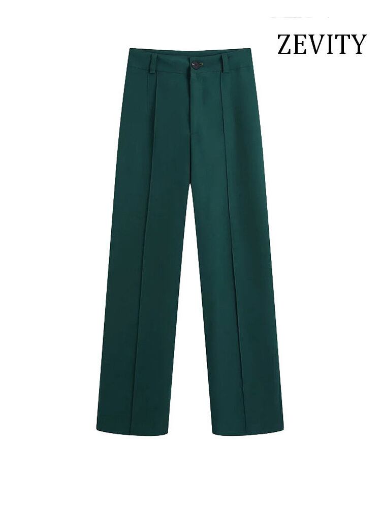 ZEVITY レディース ダーツ付き オフィスウェア ストレートパンツ ウエストジッパー フライパンツ P2 会社 学校 通勤や通学にも