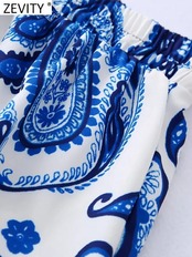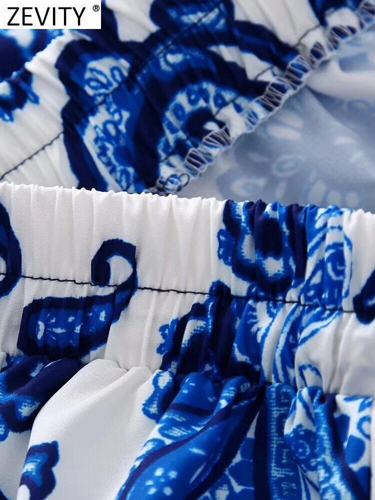 ZEVITY 女性ペイズリー花柄 Vestidos プリントバミューダショーツ女性弾性ウエストレースアップショーツシックなパンタロン Cortos P1660 エラスティック 伸縮 ブルマー