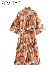女性ペイズリーフローラルプリントブレストベルトミディシャツドレスシックな七分袖 ハーネス 花柄