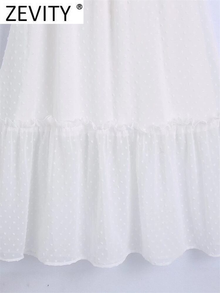 女性レースかぎ針編みパッチワークドットステッチシフォンミディドレスシックなパフスリーブレースアップ