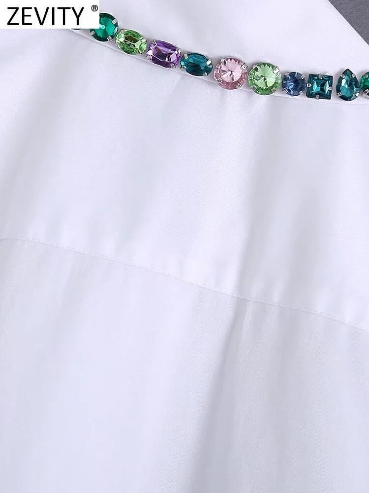 レディースカラーダイヤモンドビーズターンダウンカラーブラウスオフィス長袖シャツシックトップスLS480 ロング 会社 学校 通勤や通学にも