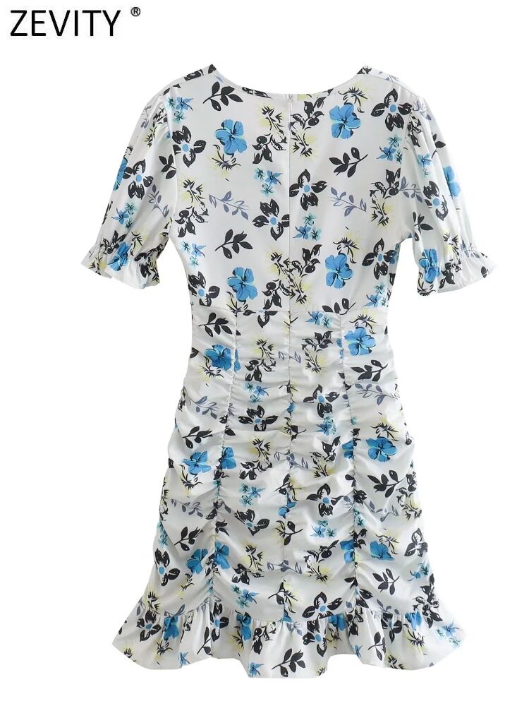 女性スクエアカラーフローラルプリントプリーツスリムドレスシックなパフスリーブヒップパッケージフリル ラッフル 花柄 スクウェア