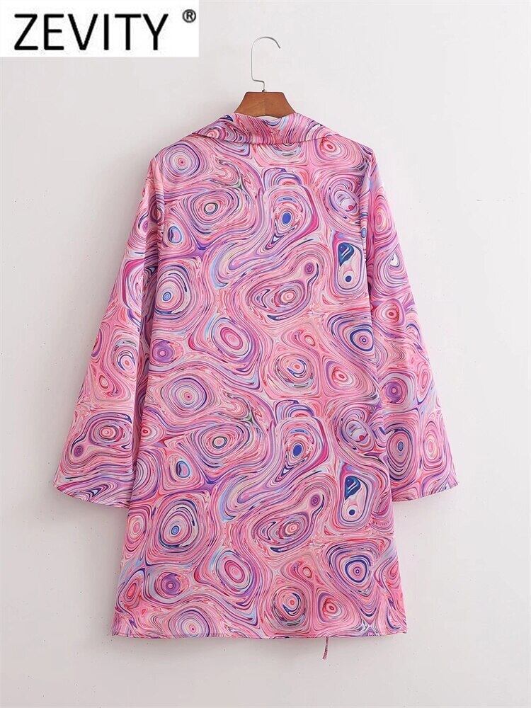 女性の抽象的なプリントボウタイドプリーツミニドレスシックな長袖ソフトサテンスリム ロング リボン