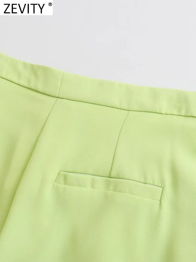 女性フレッシュカラープリーツポケットストレートパンツシックなジッパーフライロングパンツパンタロンP1856