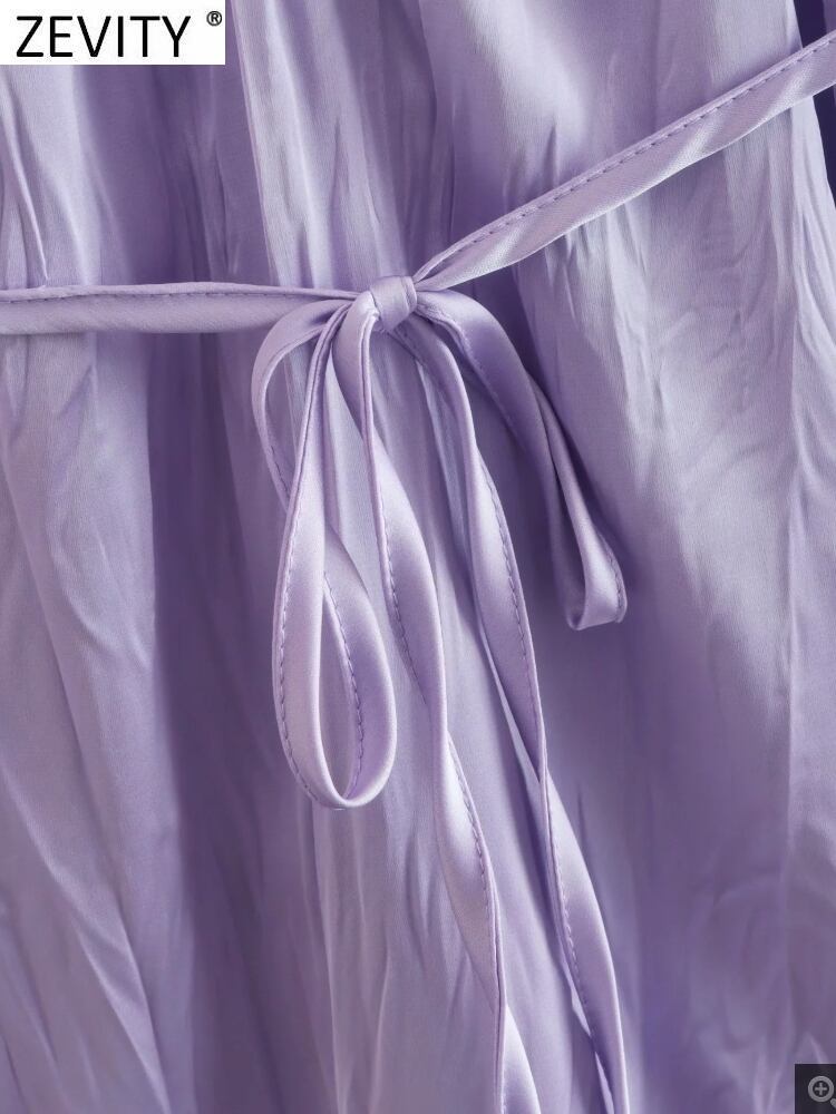 ZEVITY2022レディースパープルカラーフォールドプレスプリーツスリムミニドレスシックなレースアップベルト ハーネス