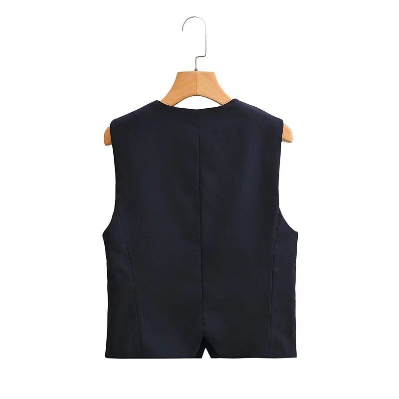 女性VネックシングルブレストポケットスリムベストジャケットノースリーブビジネスチョッキトップスCT1117