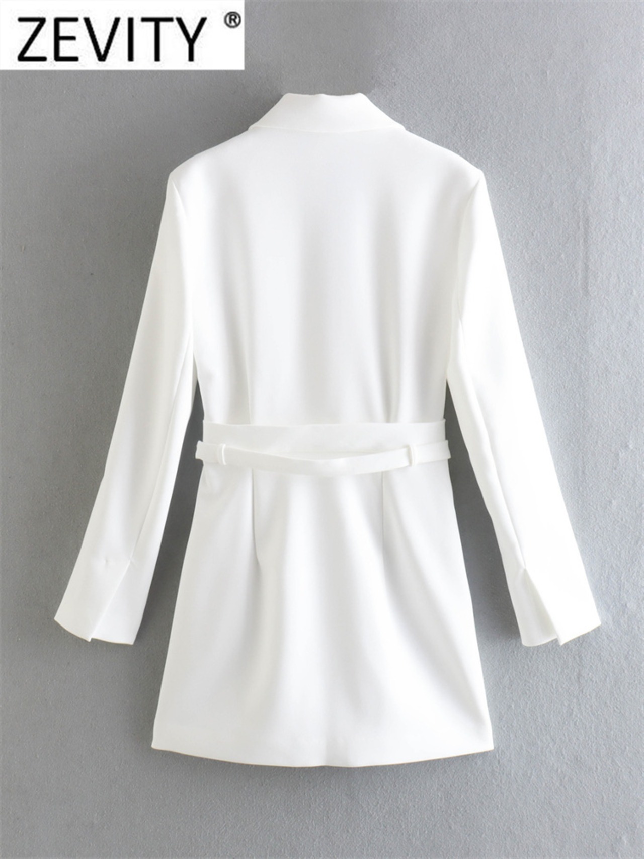 女性ストリートノッチカラーサッシホワイトミニスーツドレスシックな長袖スリムパーティー ロング