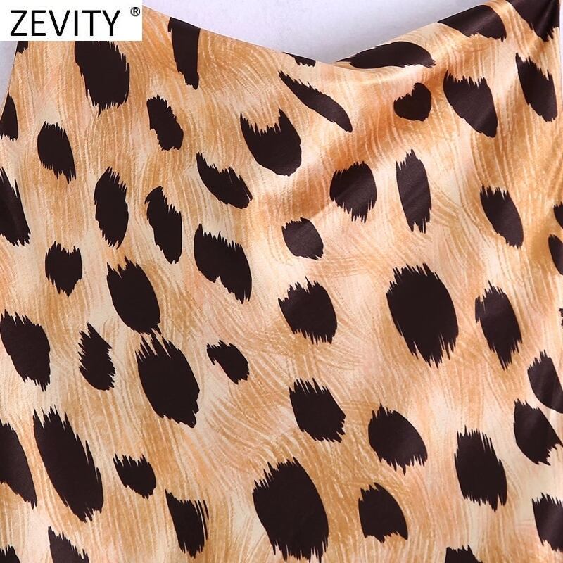 ZEVITYWomenセクシーヒョウ柄インナースタイルミディドレスシックなバックレスボウタイドスパゲッティストラップスリング リボン
