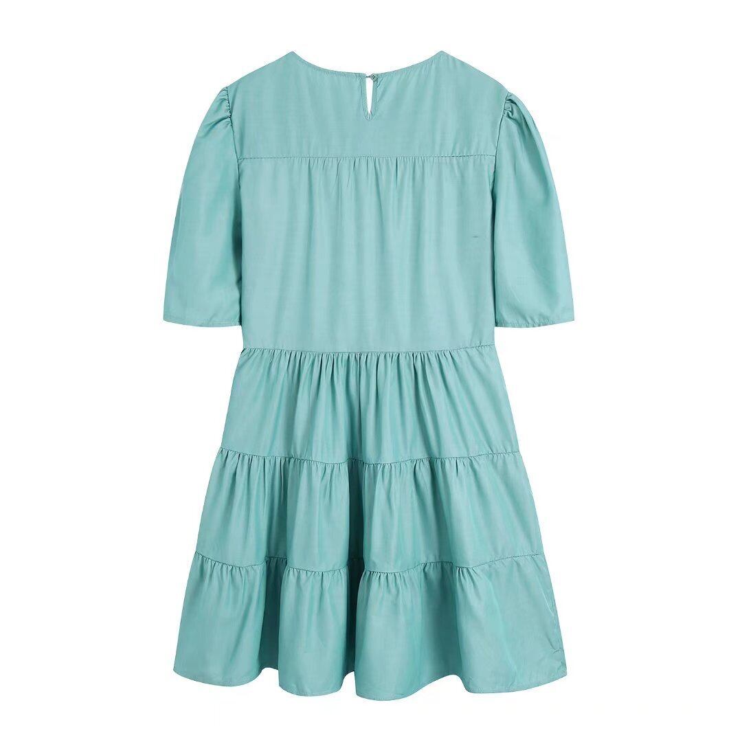 ZEVITYWomenOネック半袖ソリッドスリムデニムシャツドレスシックなプリーツフリルAライン ショート ハーフスリーブ ラッフル ソリッドカラー