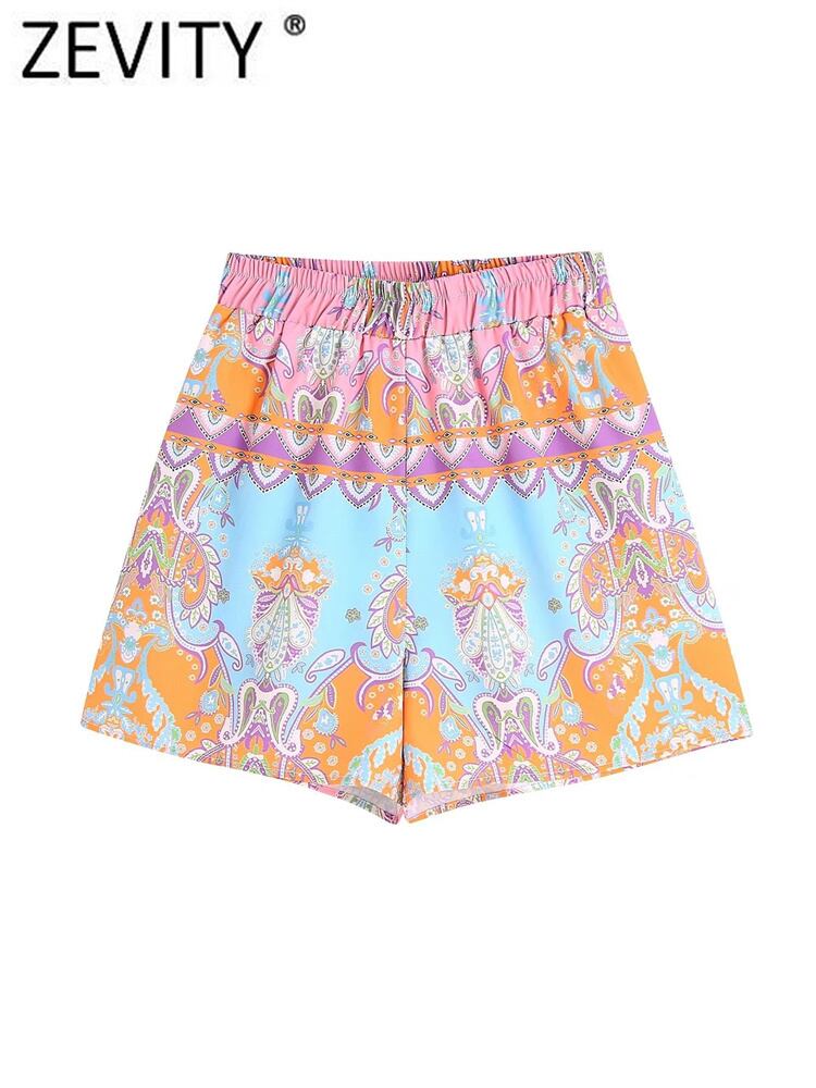 ZEVITYレディースコートフローラルプリントバミューダショーツレディエラスティックウエストパッチワークサマーショーツシックなパンタローネコルトスP1737 伸縮 夏物 ブルマー 花柄