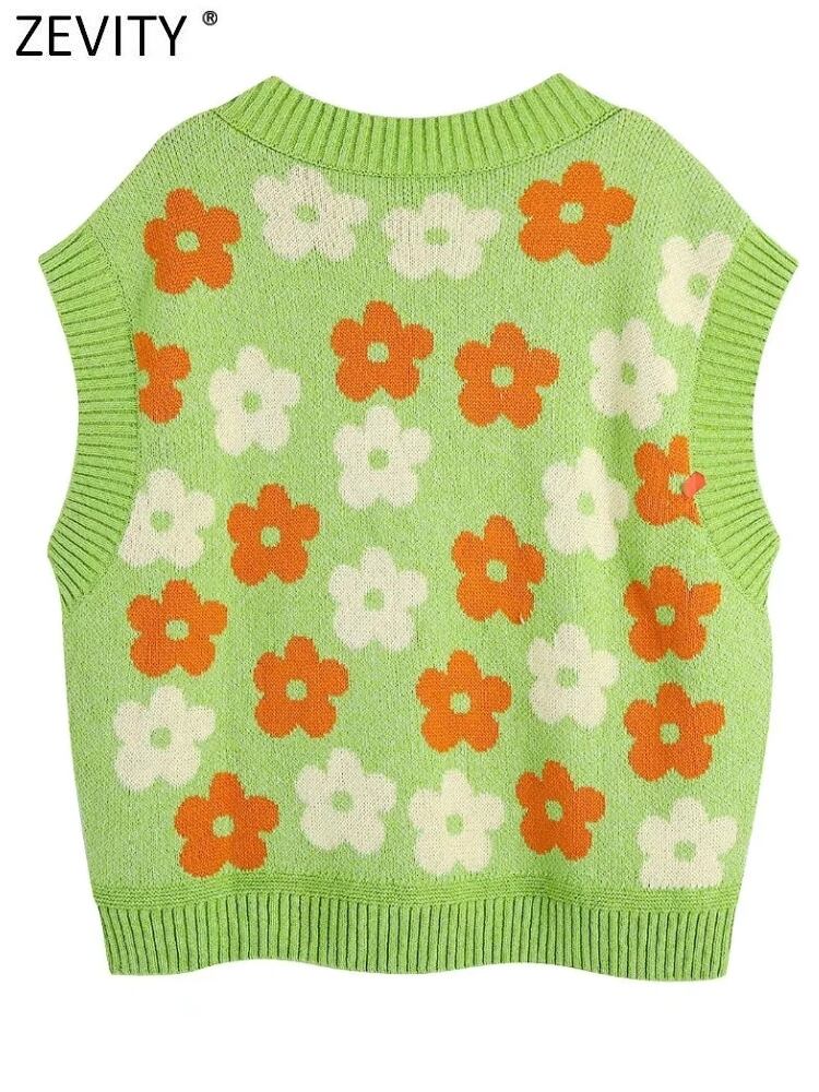 女性のカラーマッチングフローラルプリントルーズベストセーターレディVネックノースリーブチョッキシックなプルオーバートップスSW421 花柄