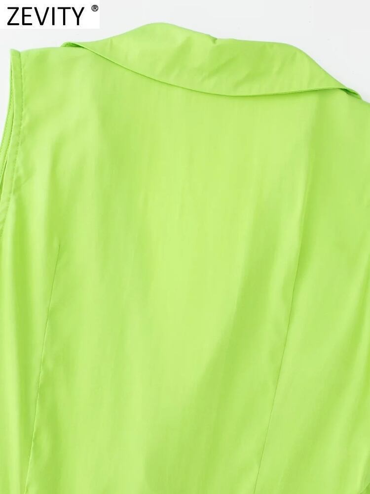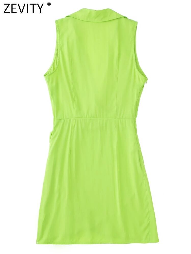 女性クロスVネックソリッドヘムイレギュラースリムミニドレスシックなノースリーブサイドプリーツジッパー ソリッドカラー