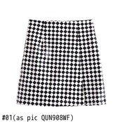女性ダイヤモンド幾何学プリントスプリットレザーミニスカート段 Faldas レディシックなバックジッパー A ライン Vestidos QUN908 Aライン