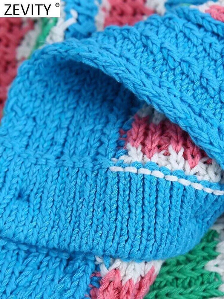 女性カラフルなストライプパターン編みセーターシックなターンダウンカラーカーディガンコートトップスSW1074