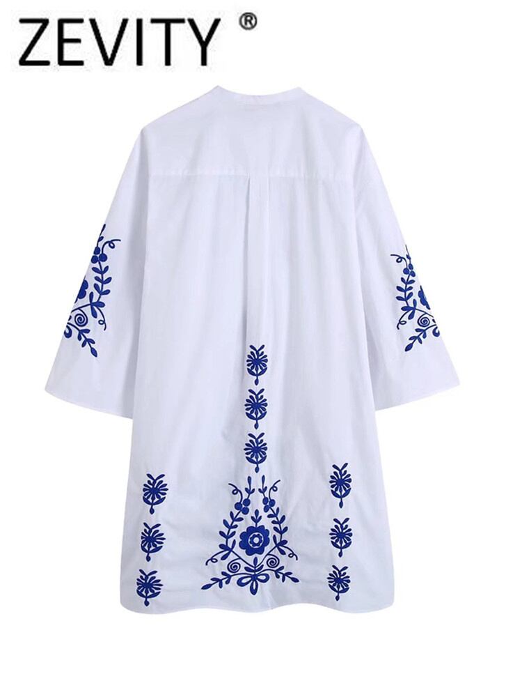 ZEVITY 女性の花刺繍プリーツミニドレスシックな七分袖 Vestidos DS303 フラワーデザイン