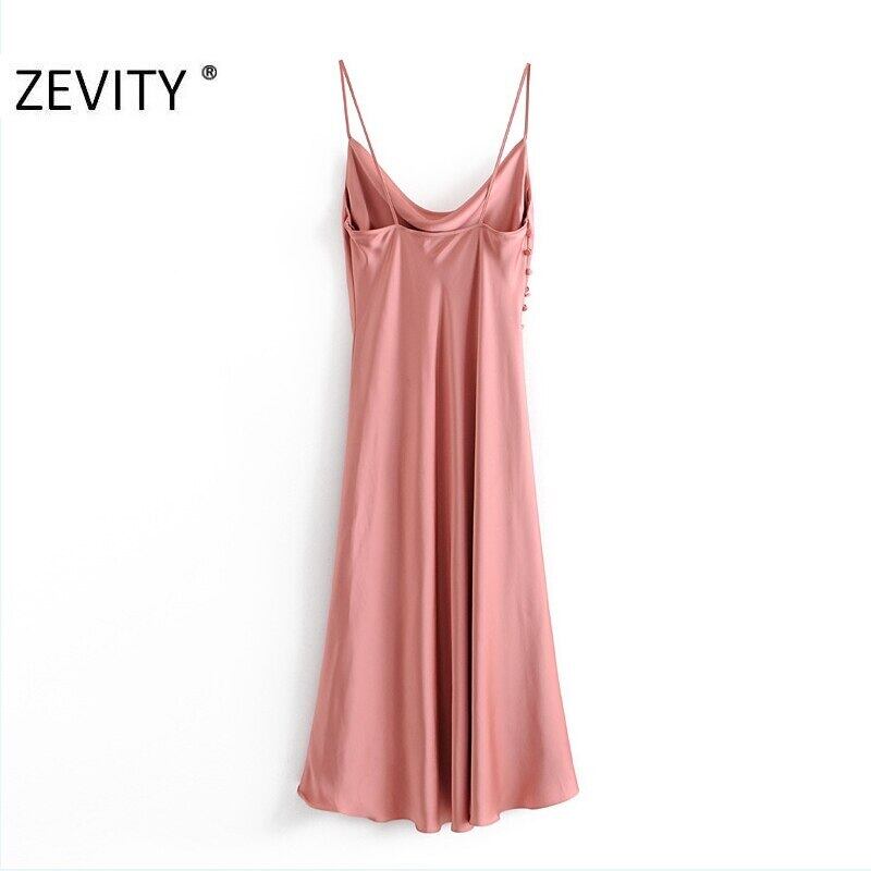 女性セクシーVネックキャンディーカラーパーティースリングスプリットミディドレススパゲッティストラップボタンクラブウェアスリム