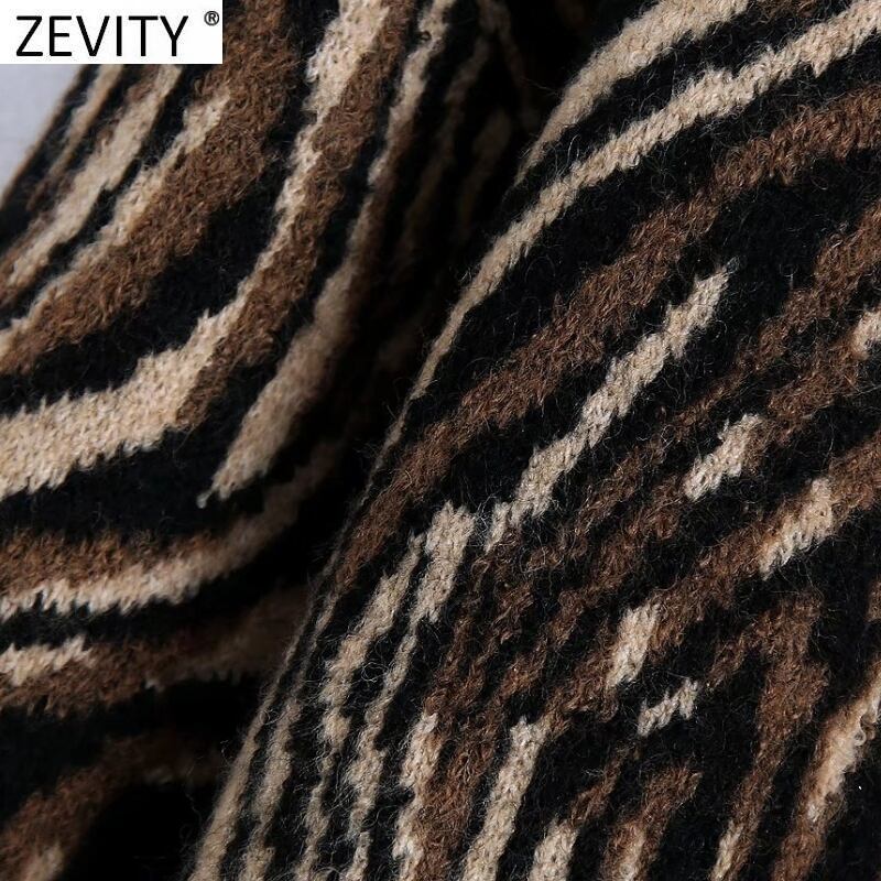 女性の動物のパターンプリントジャカード編みセーターシックなプルオーバーストリートトップスSW1036