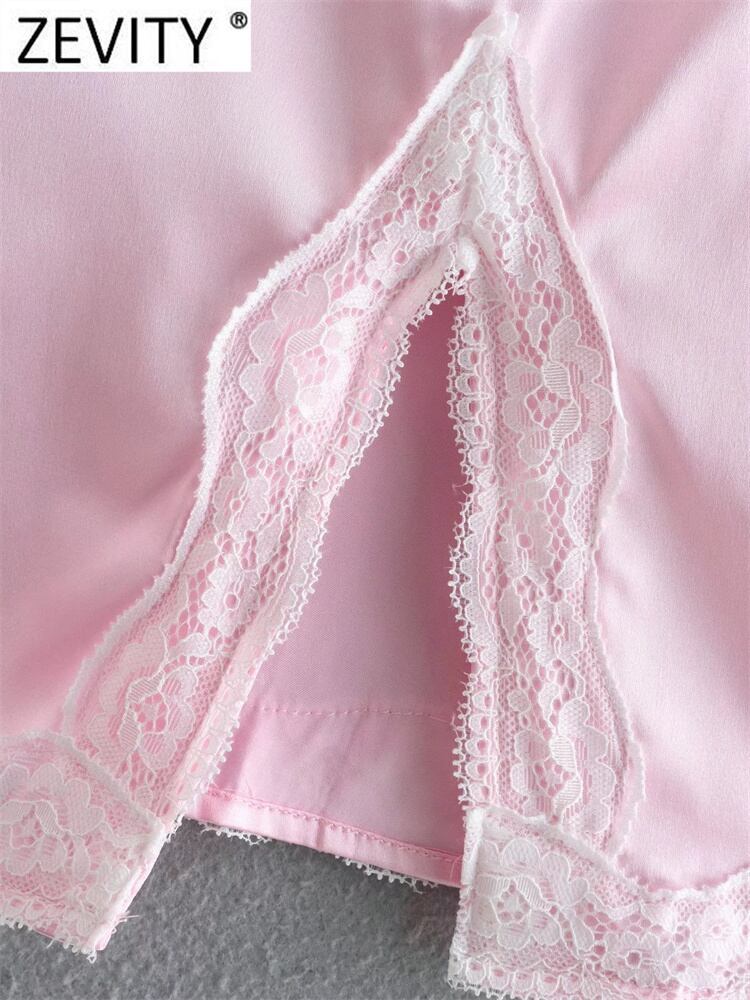 ZEVITYレディースセクシーVネックレースパッチワークスプリットサテンスリングミニドレスシックなスパゲッティストラップジッパー