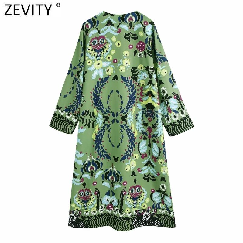 2021女性Vネックパッチワークフラワープリントシャツドレスシックなレトロストレートミディ フラワーデザイン