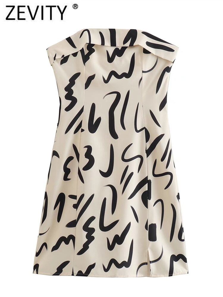 女性のセクシーなストラップレスグラフィティプリントスリムミニドレスシックなサマーバックジッパースプリットパーティー 夏物