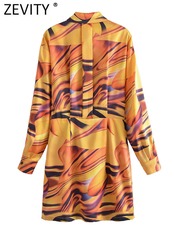 女性の幾何学的なペイントパターンプリントプリーツミニシャツドレスシックな長袖ボタン ロング