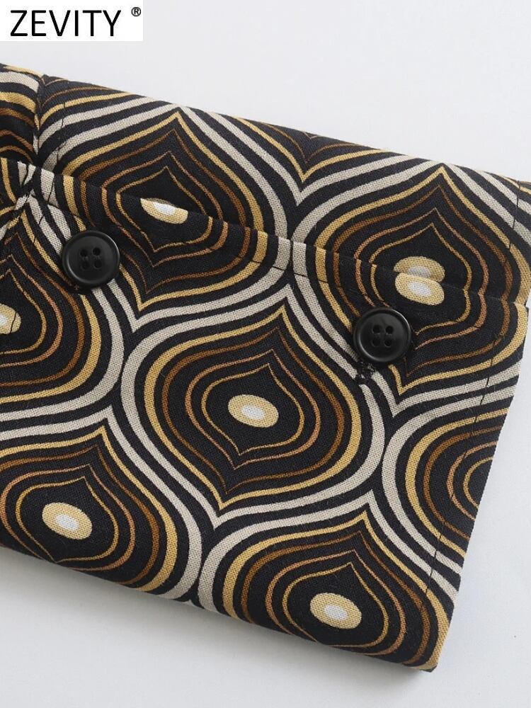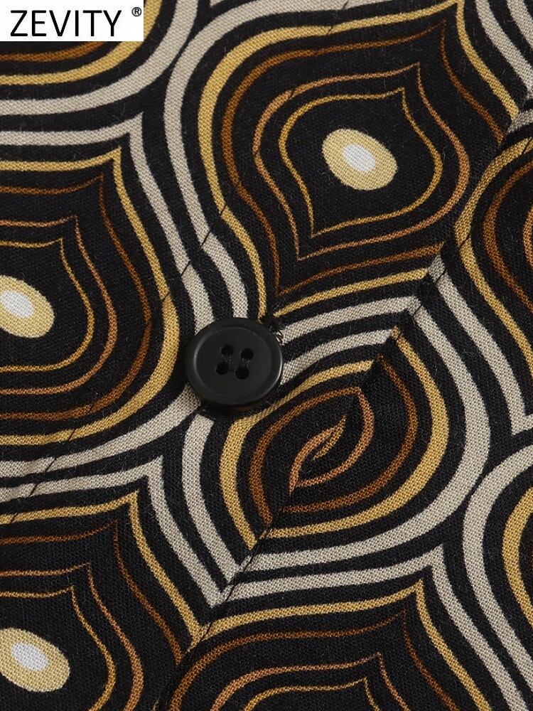 女性の幾何学的なプリントブラウスオフィスシングルブレストシャツシックなトップスLS10116 会社 学校 通勤や通学にも