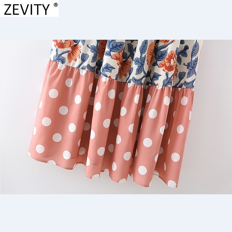 女性ポルカドットパッチワークフラワープリントスリングミディドレスシックなVネックAラインサマーベスティドスDS8132 夏物 フラワーデザイン