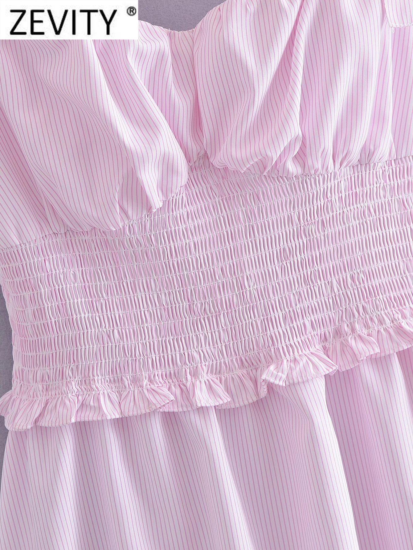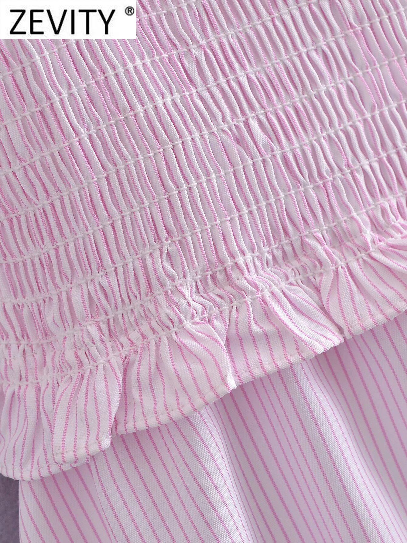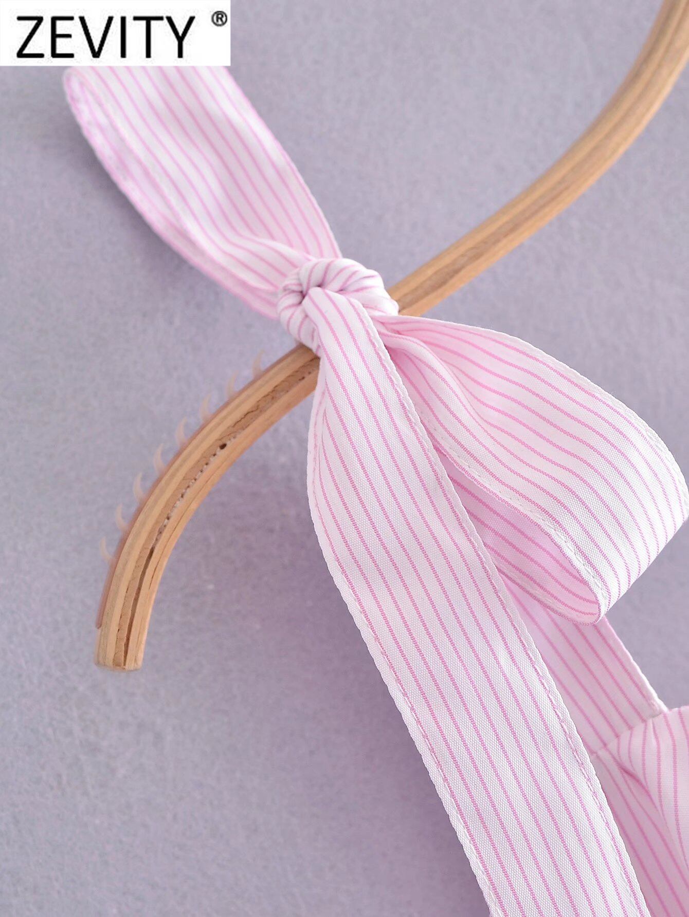 女性ボウタイドストラップストライププリント伸縮性ウエストスリングミニドレスシックなプリーツフリルスリム リボン ラッフル エラスティック
