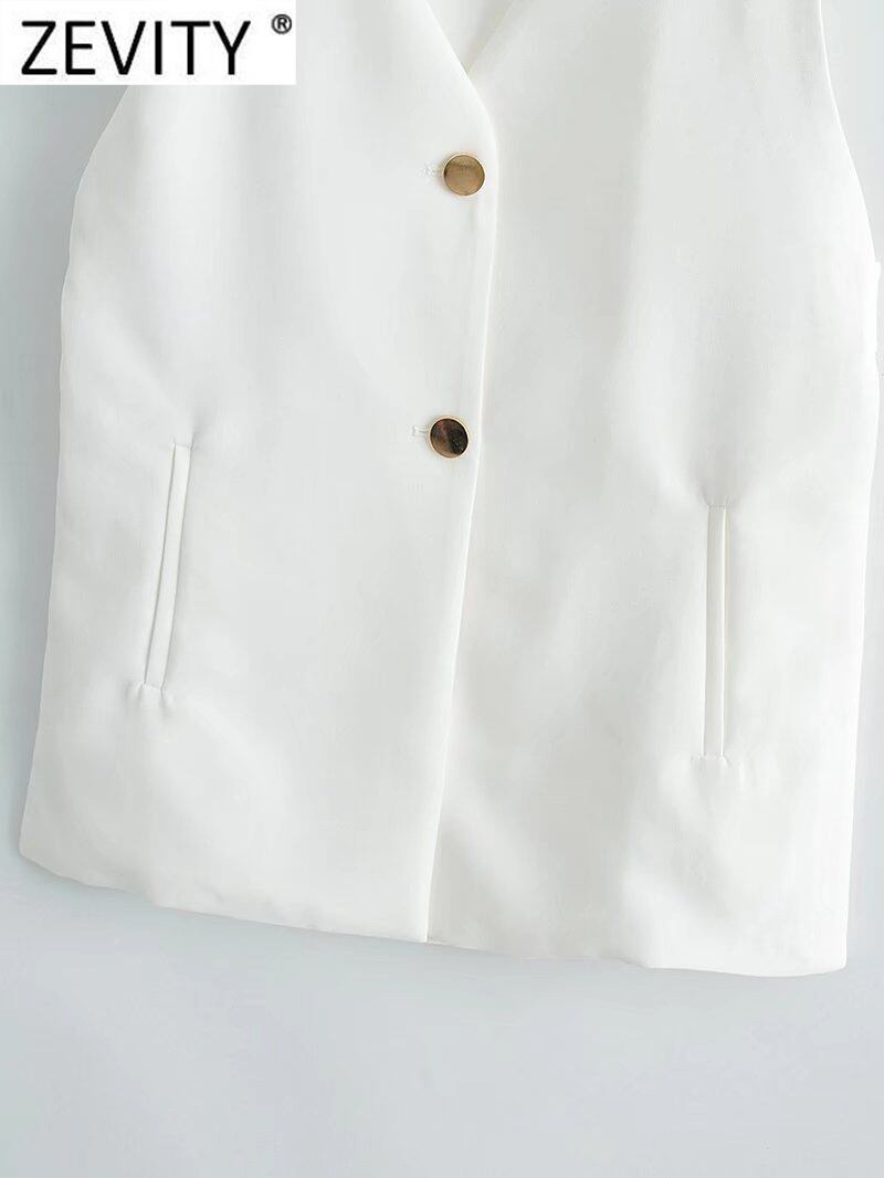 女性ソリッドサイドスプリットボタンアップホワイトベストノースリーブアウタースーツシックなアウターウェアチョッキトップスCT1079 ソリッドカラー