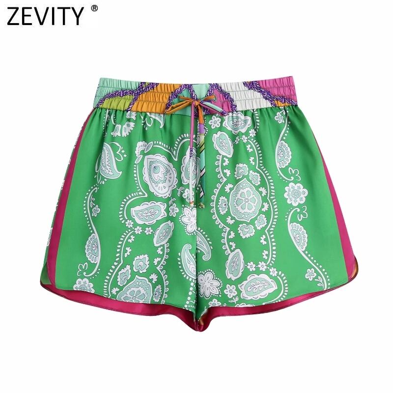 2021年女性フローラルプリントパッチワークサマーホットスカートショーツシックな伸縮性ウエストリボンパンタローネコルトスP1122 エラスティック 夏物 ブルマー 花柄